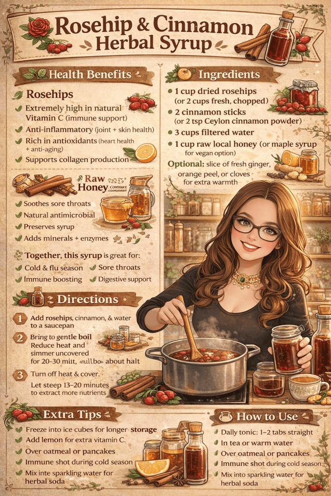 There’s something empowering about knowing you can support your health with simple herbs from your kitchen. This rosehip and cinnamon syrup isn’t complicated or expensive — it’s just real ingredients working in harmony with your body.